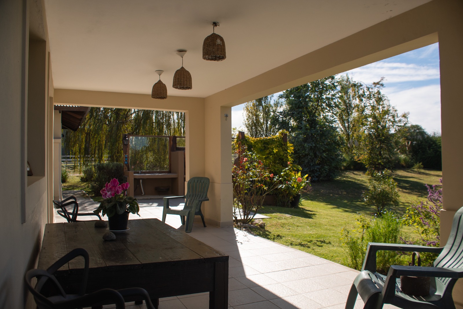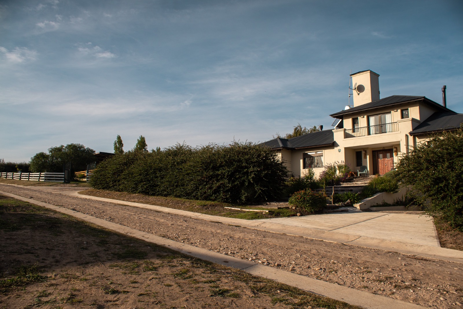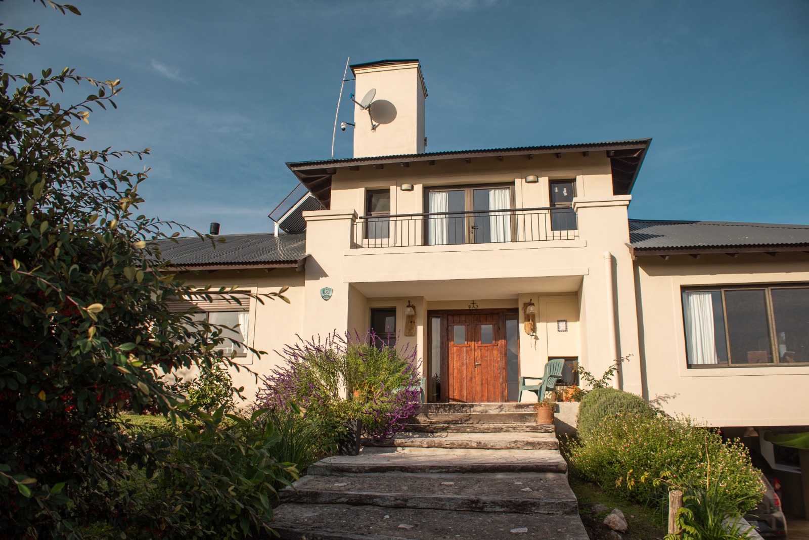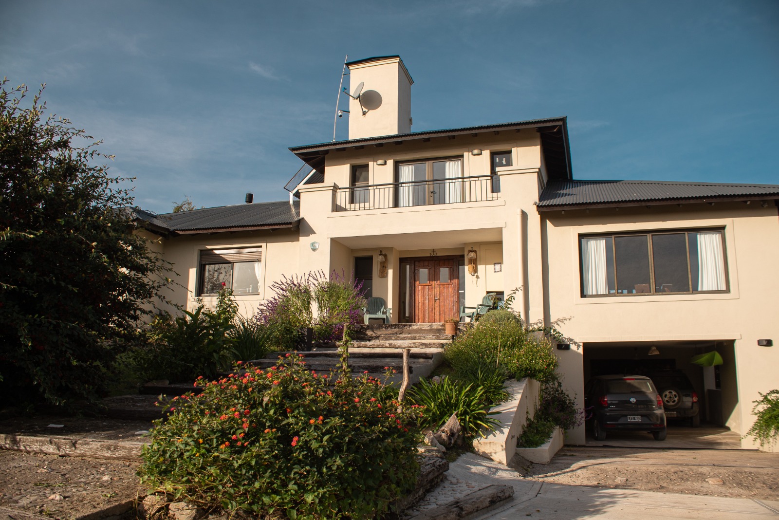 Cuenta con living–comedor con salida a galería, estufa Tromen, cocina–comedor amplia con cocina económica y lavadero. Dispone de cinco dormitorios (principal en suite con balcones), cuatro baños, y cochera para cuatro vehículos. En el exterior, parrilla y horno de barro.
