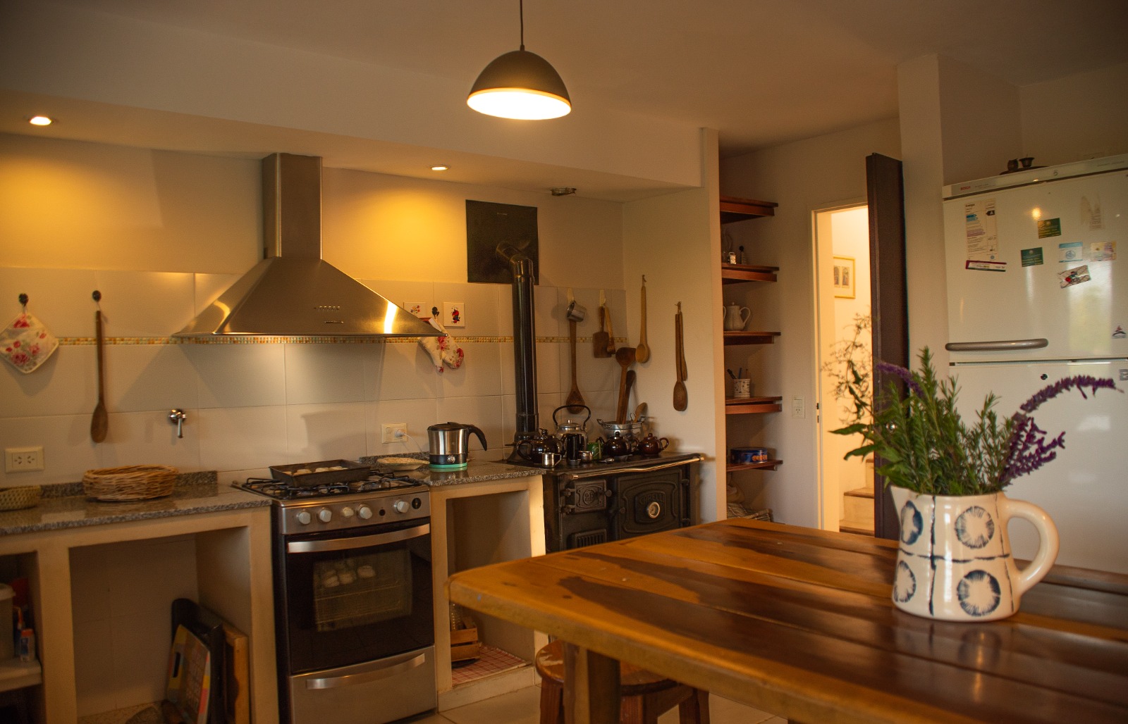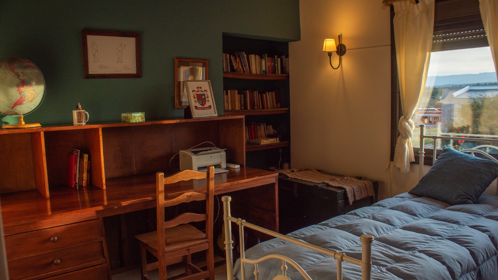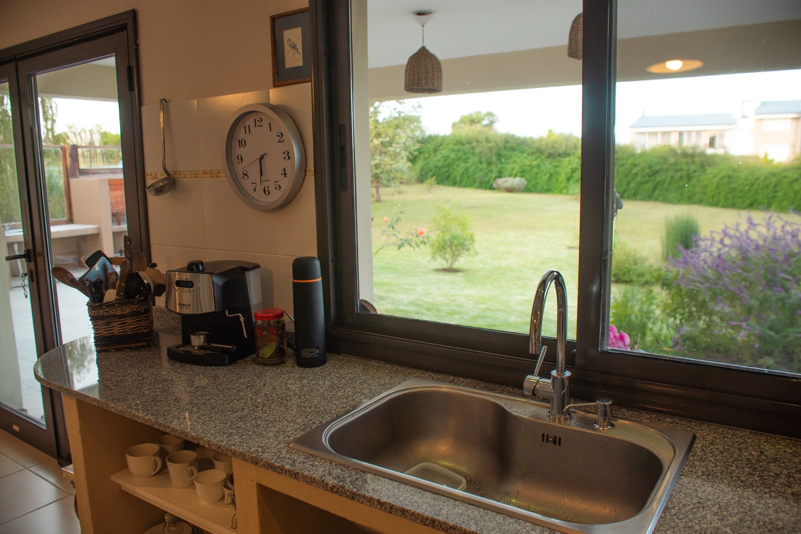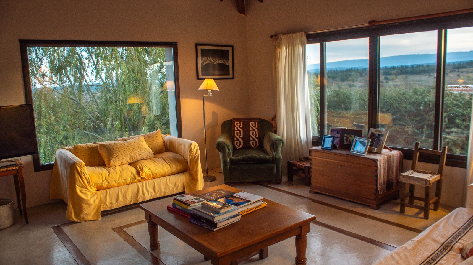 Cuenta con living–comedor con salida a galería, estufa Tromen, cocina–comedor amplia con cocina económica y lavadero. Dispone de cinco dormitorios (principal en suite con balcones), cuatro baños, y cochera para cuatro vehículos. En el exterior, parrilla y horno de barro.